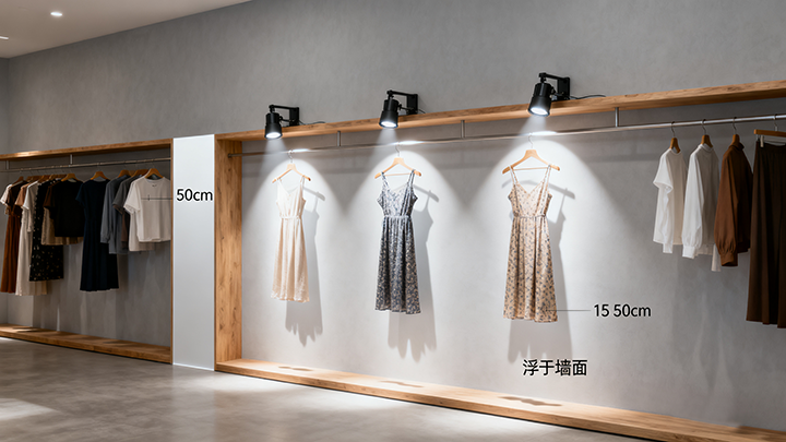 在我们服装店的设计中,LED射灯对于服装效果的展示非常重要,它的色温还有角度直接关系到服装对于客人的吸引力,好的照明设计对于销量的提升是非常大的。